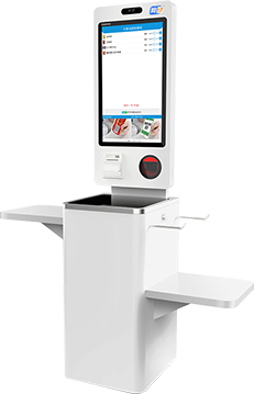 WF-GA00是一款高端收银设备产品,顾客通过设备扫描、付款,完成结算流程